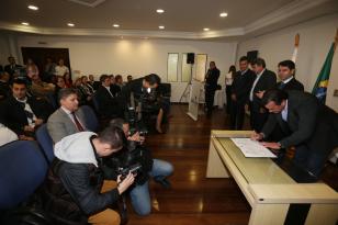 14:14 Richa firma convênio com Araucária para realocar famílias de área de risco O governador Beto Richa, o prefeito de Araucária, Olizandro José Ferreira, e o presidente do Instituto Ambiental do Paraná (IAP), Luiz Tarcísio Mossato Pinto, assinaram, nesta quarta-feira (2), um convênio para o repasse R$ 10 milhões para o município transferir cerca de 600 famílias.