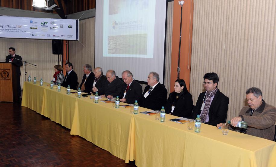 Participaram da abertura do workshop o presidente do Instituto de Agronômico do Paraná do Paraná (Iapar), Florindo Dalberto; o presidente do Simepar, Eduardo Alvin; o chefe-geral da Embrapa Florestas, Edson Tadeu Iede; o assessor da Secretaria da Ciência, Tecnologia e Ensino Superior, Aroldo Messias de Melo Junior; a secretária-executiva do Fórum de Mudanças Climáticas, Rosana Castella; o coordenador de Mudanças Climáticas da Secretaria do Meio Ambiente, Carlos Garcez, e representantes da Universidade Federal do Paraná (UFPR), Unicentro, Universidade Estadual de Ponta Grossa e Fundação ABC.