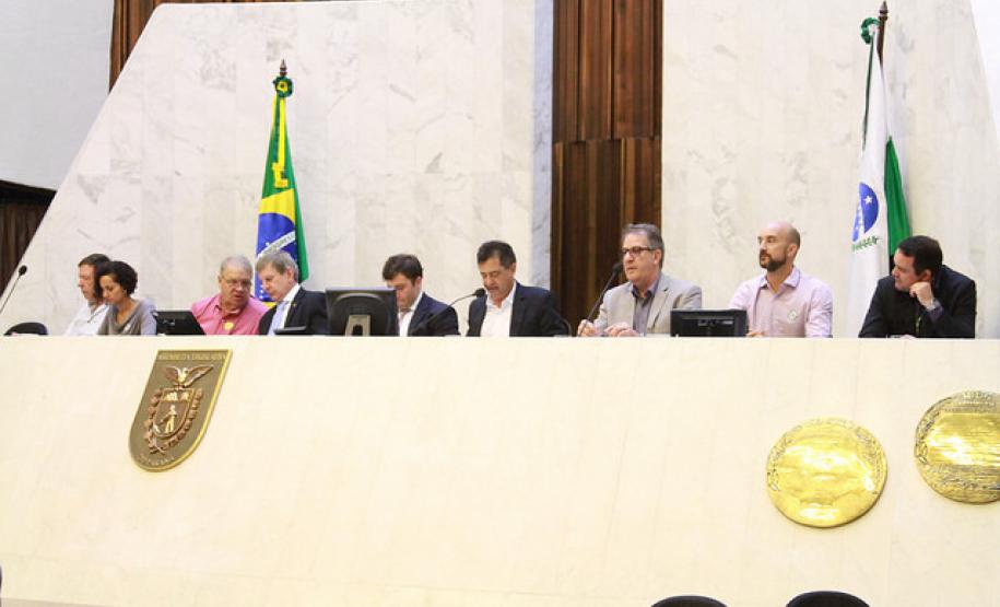 A Mesa diretora dos trabalhos foi composta, além de Evandro Junior, pelos deputados Claudio Palozi (PSC), Elio Rusch (DEM), Rasca Rodrigues (PV) e Ademir Bier (PMDB); pelo secretário estadual de Meio Ambiente Antonio Carlos Bonetti; pelo chefe do Departamento Socioambiental do Instituto Ambiental do Paraná (IAP), Francelo Mognon; pelo também diretor do IAP Guilherme de Camargo Vasconcelos; pela bióloga da COPEL, Vanessa Barreto da Silva; pelo prefeito de Ribeirão Claro, Mário Pereira; e por João Lech Samek, da diretoria de Gestão de Bacias Hidrográficas do Instituto das Águas.