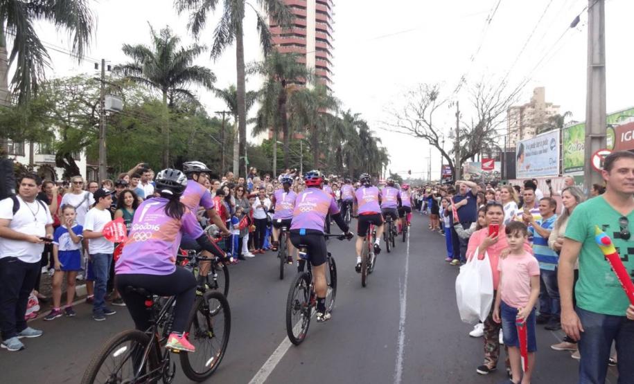 A chegada da Tocha Olímpica a Foz do Iguaçu no final da tarde desta quinta-feira (30), teve a participação especial de um grupo de ciclistas locais, que acompanhou o trajeto de cerca de 20 quilômetros feito pela chama e seus 102 condutores. Em Londrina, por onde a tocha entrou no estado no inicio desta semana, ciclistas também acompanharam o trajeto da chama olímpica.