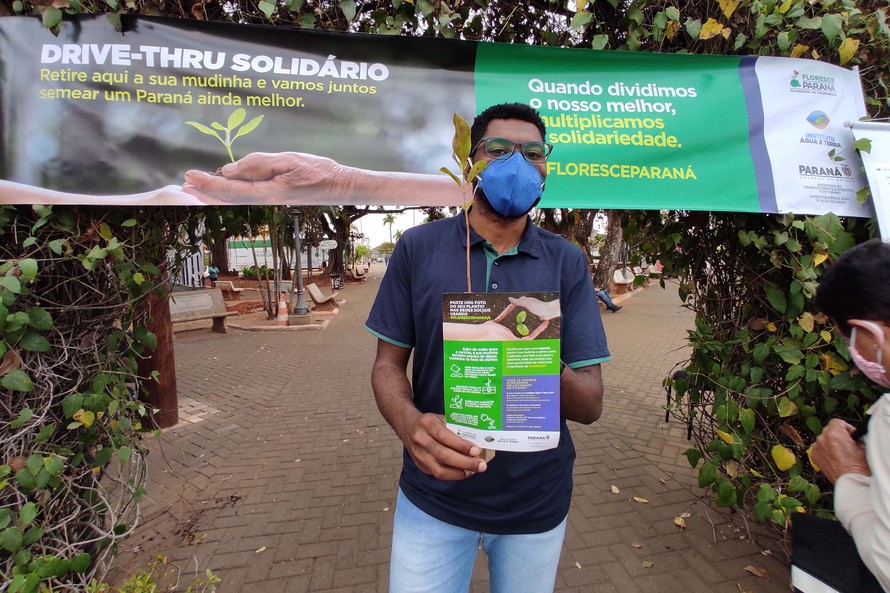 O empresário Mauricio Pacheco ouviu na rádio que estavam distribuindo mudas gratuitamente e passou no drive-thru de Curitiba. “Estava aqui perto e resolvi pegar umas mudas de ipê-amarelo. Eu acho que é pensar no futuro, tenho um filho de quatro anos e temos que manter a natureza sempre mais forte que a gente. Sem saúde ecológica, não conseguimos evoluir”, afirmou.