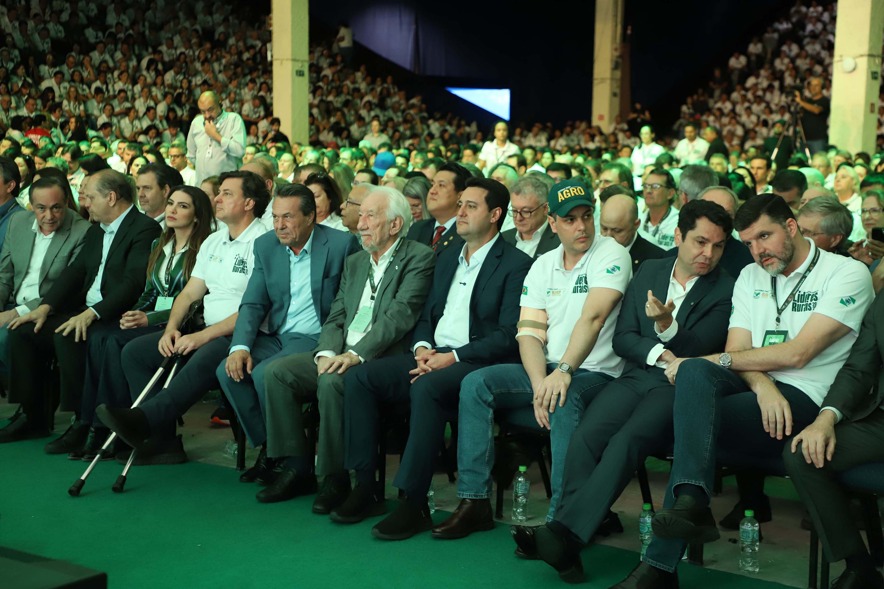 PRESENÇAS – Também acompanharam a solenidade o vice-governador Darci Piana; o secretário estadual do Desenvolvimento Sustentável, Rafael Greca; o diretor-presidente do Instituto de Desenvolvimento Rural do Paraná (IDR-Paraná), Natalino Avance; o diretor-presidente do IAT, Everton Souza; o diretor-presidente da Adapar, Otamir Martins; o secretário-executivo do Codesul e ex-governador Orlando Pessuti; o superintendente do Sebrae/PR, Vítor Tioqueta; o presidente da Assembleia Legislativa do Paraná, Alexandre Curi; o senador Sergio Moro; os deputados federais Ricardo Barros, Sérgio Souza, Luiz Nishimori, Stephanes Júnior e Rosângela Moro; os deputados estaduais Paulo Gomes, Maria Victoria, Anibelli Neto, Paulo Gomes e Fábio Oliveira; o presidente do Sistema Ocepar, José Roberto Ricken; e diversas lideranças e diretores ligados à Faep.
