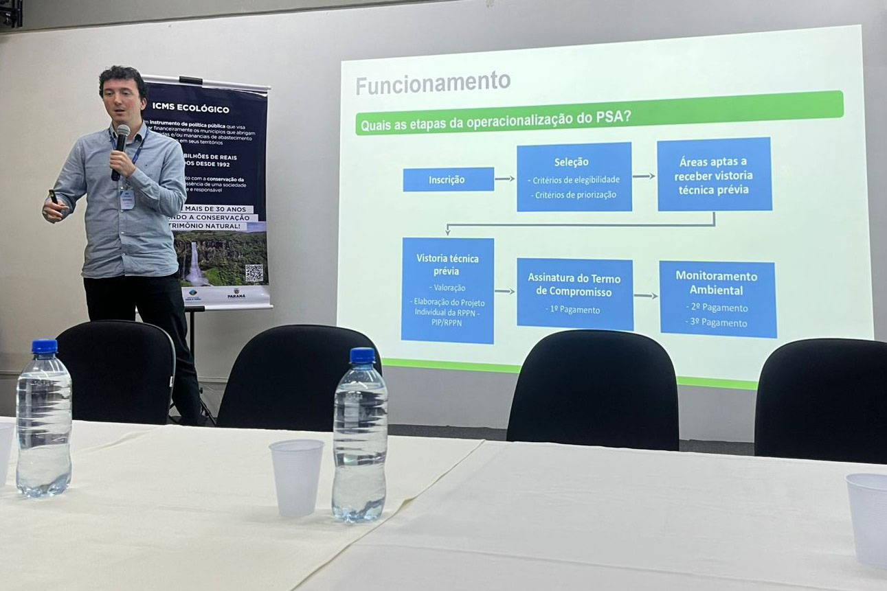 A ação foi conduzida pela Diretoria do Patrimônio Natural (DIPAN) – responsável pelo PSA para RPPNs e pelo ICMS-E Biodiversidade – e pela Diretoria de Saneamento e Recursos Hídricos (DISAR), que gerencia o PSA Hídrico e o ICMS-E Mananciais. A presença das duas diretorias proporcionou uma abordagem integrada, alinhando informações e fortalecendo a capacidade técnica das equipes regionais para que atuem em conjunto aos municípios.