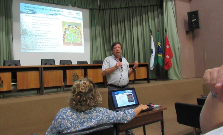 DESAFIO – Na apresentação da Companhia de Saneamento do Paraná (Sanepar), o gerente da Assessoria de Planejamento de Desenvolvimento Ambiental (APDA), Pedro Franco, afirmou que a Sanepar está se planejando para a melhoria da qualidade dos corpos hídricos em todo o Estado. “A Sanepar tem representação em todos os comitês de bacia do Estado e da União, oferece estrutura de apoio a seus representantes e também oferece seu quadro técnico para auxiliar no plano de enquadramento”, disse.
