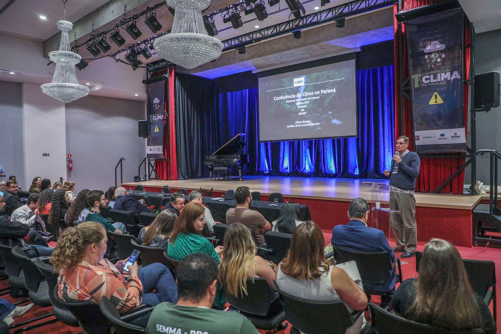O Governo do Estado do Paraná promoveu nesta quarta-feira (26), em Curitiba, a 1ª Conferência do Clima do Paraná, evento voltado a prefeitos e representantes dos municípios. Realizado pela Secretaria Estadual do Desenvolvimento Sustentável (Sedest), Sistema de Tecnologia e Monitoramento Ambiental do Paraná (Simepar), Instituto Água e Terra (IAT) e Coordenadoria Estadual da Defesa Civil, a conferência reuniu especialistas para apoiar os municípios na tomada de decisões frente aos desafios climáticos.