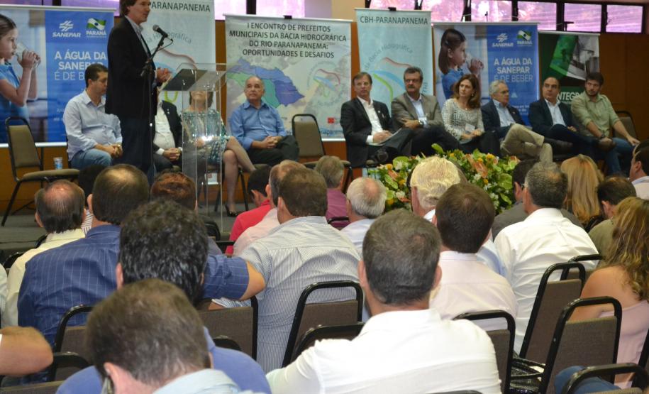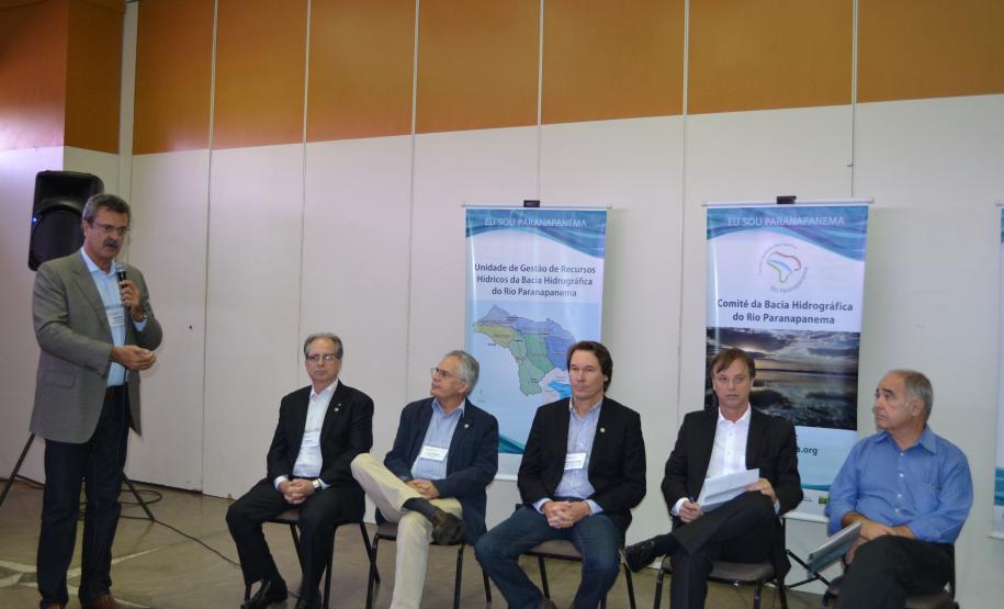 O presidente da Agência Nacional de Águas, Vicente Andreu Guillo, destacou a participação dos prefeitos como essencial para o fortalecimento dos mais de 200 comitês de bacia brasileiros. “Se não houver a participação ativa e o compromisso dos prefeitos, não há como vencer os desafios que se apresentam. Precisamos de um amplo processo de planejamento e político, de consenso sobre as prioridades do uso das bacias”, afirmou. Ele abordou a complexidade da gestão de mananciais limítrofes citando exemplos como o do Rio Paranapanema, cuja macrobacia é composta pelo Pontal do Paranapanema, Médio Paranapanema e Alto Paranapanema, de São Paulo, e Piraponema, Tibagi, Norte Pioneiro, do Paraná.