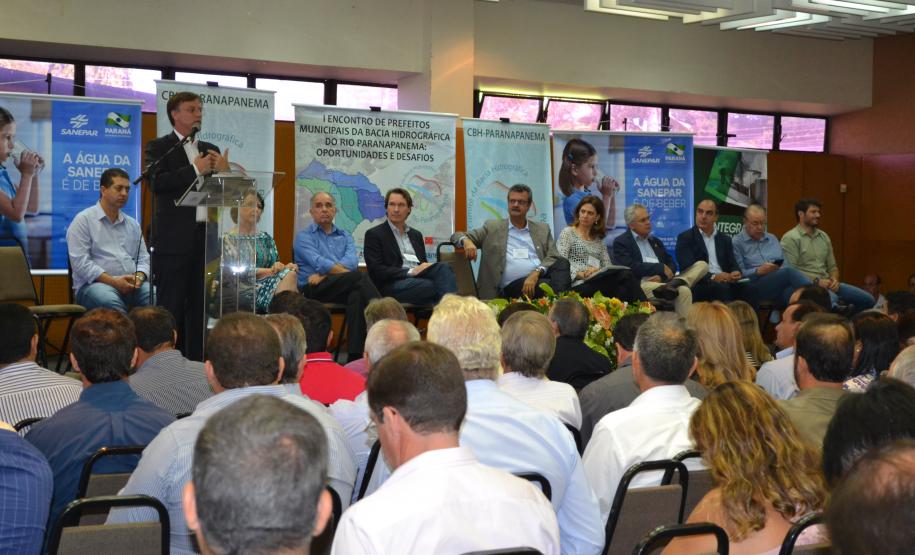 Noventa prefeitos de municípios que integram a macrobacia do Rio Paranapanema, do Paraná e de São Paulo, e outras autoridades participaram, nesta sexta-feira (18), em Londrina, de debate sobre a gestão dos recursos hídricos. A visão integrada e a definição consensual de prioridades de ações foram os principais pontos abordados no I Encontro dos Prefeitos Municipais da Bacia Hidrográfica do Rio Paranapanema.