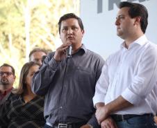 PRESENÇAS – Participaram da solenidade em Quitandinha os secretários João Carlos Ortega, do Desenvolvimento Urbano e Obras Públicas, e Norberto Ortigara, da Agricultura e do Abastecimento; o deputado federal Luciano Ducci; o deputado estadual Francisco Buhrer; o presidente da Comec, Gilson Santos; o prefeito de Tijucas do Sul, César Matucheski; além de vereadores e lideranças locais.