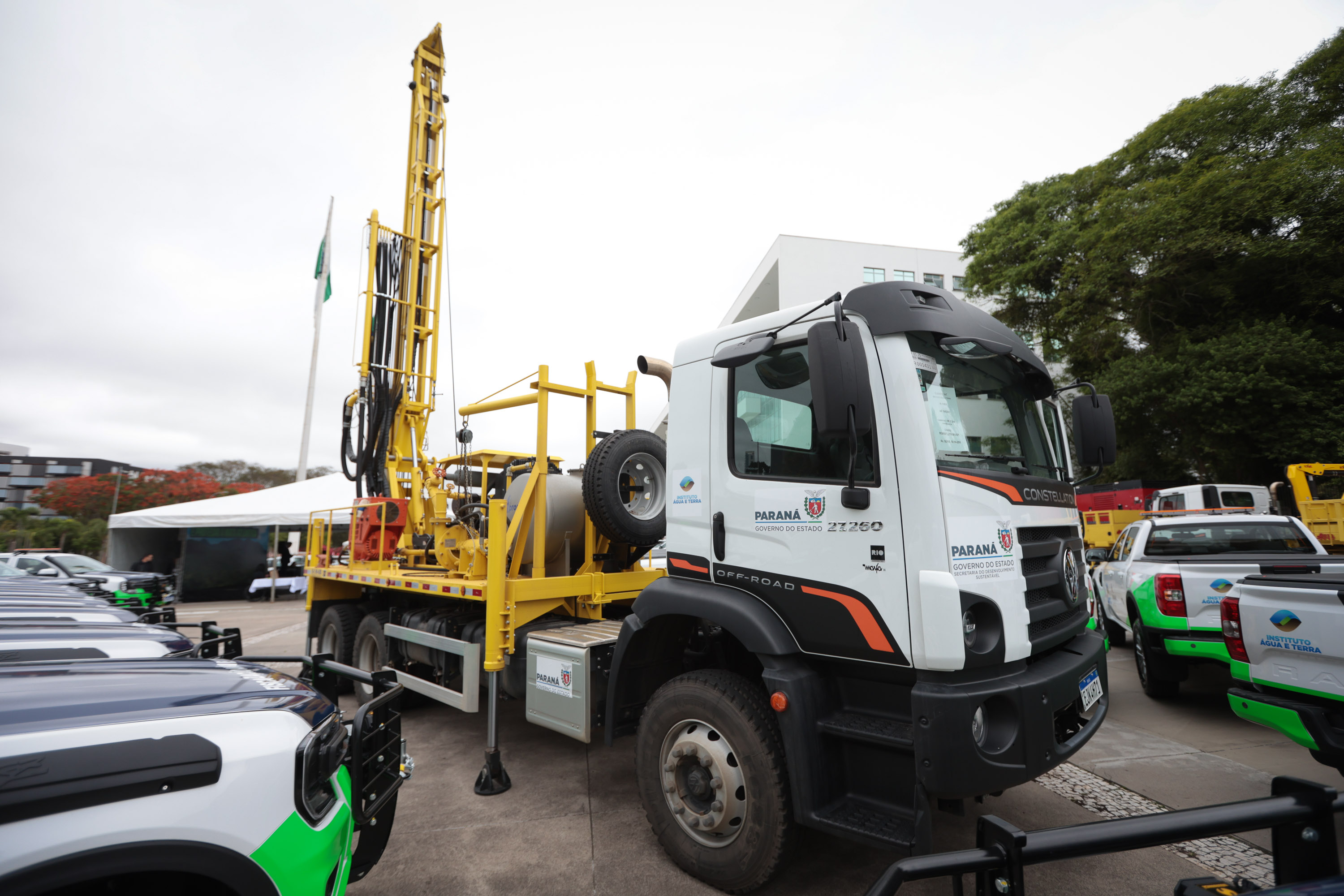 O Governo do Estado vai dobrar a capacidade de abertura de poços artesianos por meio do programa Água no Campo. O vice-governador Darci Piana entregou nesta quinta-feira (30), durante evento no Palácio Iguaçu, em Curitiba, três comboios, com sete caminhões no total, para perfuração de pontos de águas subterrâneas, alcançando até 500 metros de profundidade. Os equipamentos permitirão que a quantidade de poços tubulares construídos por ano salte dos atuais 150 para 300. O investimento é de R$ 23 milhões. O planejamento do Instituto Água e Terra (IAT), órgão responsável pelo projeto, é que os novos aparelhos entrem em funcionamento já neste mês de novembro.