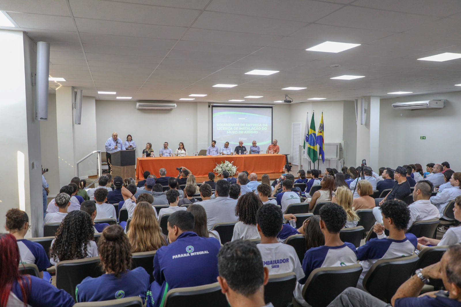 O Governo do Estado, por meio da Secretaria do Desenvolvimento Sustentável (Sedest), entregou nesta quarta-feira (15) a Licença Ambiental de Instalação (LI), emitida pelo Instituto Água e Terra (IAT), para a obra do muro de arrimo do Complexo Parque Temático Sete Quedas, em Guaíra, no Oeste do Paraná. O projeto é o marco inicial da revitalização da orla do Rio Paraná, um conjunto de ações que unem sustentabilidade, infraestrutura e bem-estar da população.