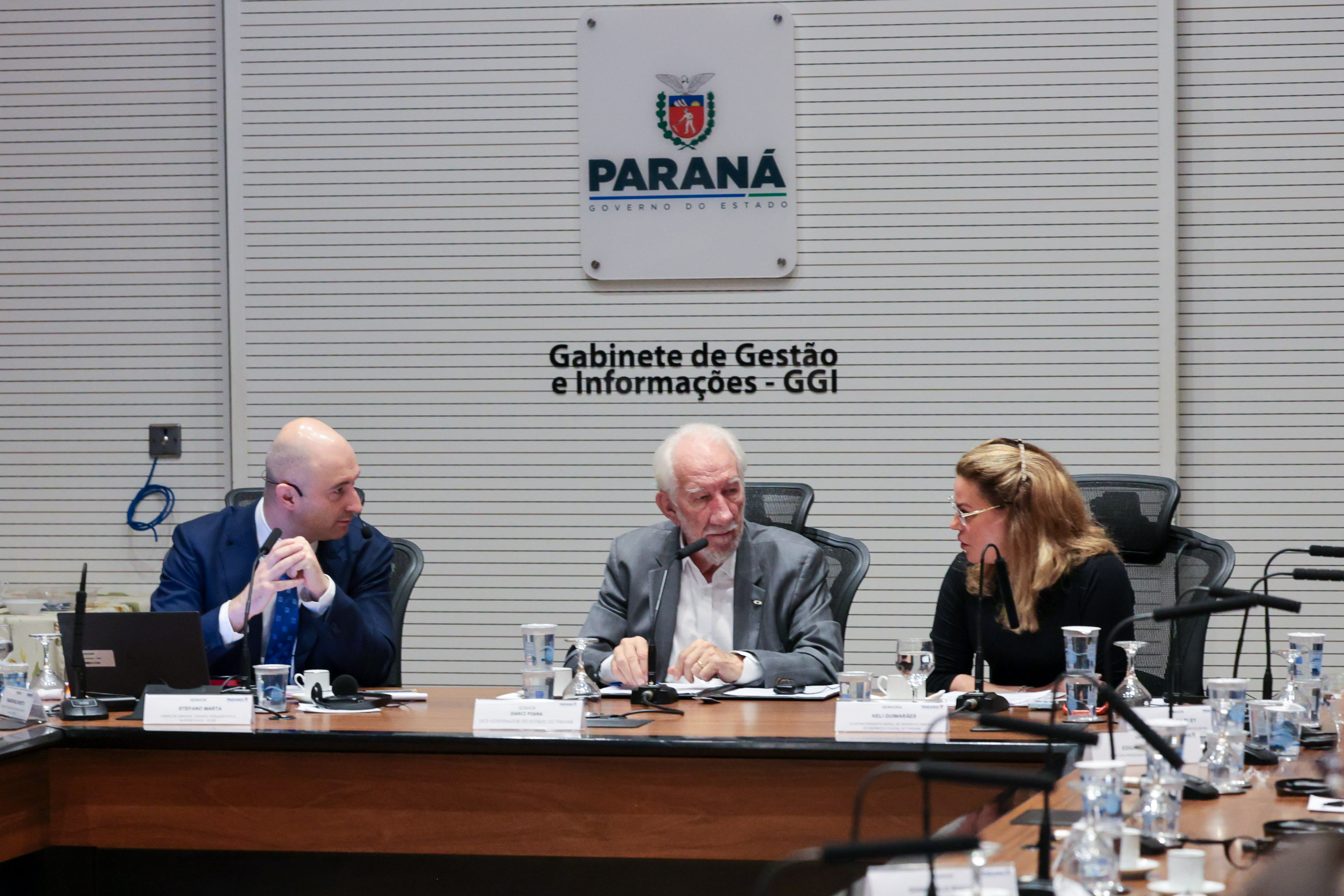 PRESENÇAS – Participaram da reunião os diretores-presidentes da Sanepar, Wilson Bley, da Invest Paraná, Eduardo Bekin, da Fomento Paraná, Cláudio Stabile, e do Ipardes, Jorge Callado; o diretor de Relações Internacionais e Institucionais da Invest Paraná, Giancarlo Rocco; o diretor-geral da Secretaria de Estado da Fazenda, Luiz Paulo Budal; o diretor de Apoio aos Municípios da Secretaria de Estado das Cidades, Valdomiro Hrysay; e demais autoridades.