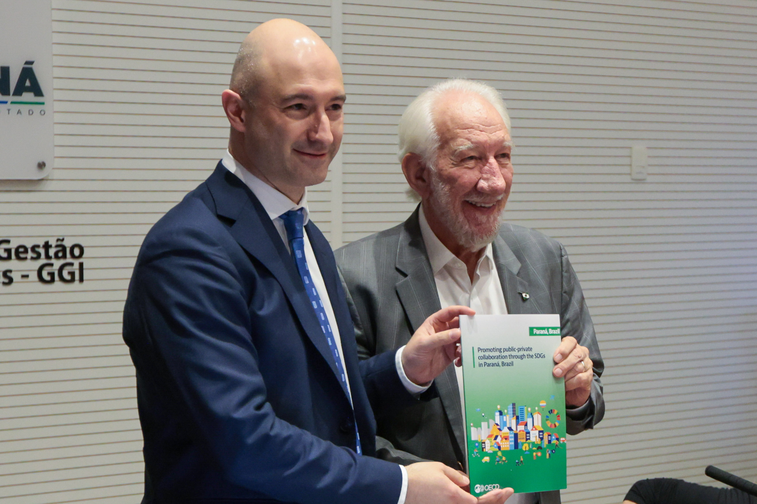 O Governo do Paraná recebeu nesta terça-feira (10) o novo relatório produzido pela Organização para a Cooperação e Desenvolvimento Econômico (OCDE) sobre a implementação dos Objetivos de Desenvolvimento Sustentável (ODS) no Estado, com foco na esfera público-privada. Uma comitiva do órgão mundial entregou o documento ao vice-governador Darci Piana no Palácio Iguaçu, onde também foi renovada a parceria pelos próximos dois anos.