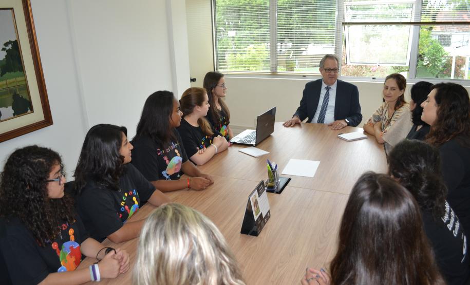 Participaram da reunião, além dos representantes da escola, a coordenadora de educação ambiental da secretaria Daniela Miranda; a coordenadora de biodiversidade e florestas, Sueli Ota; a bióloga Fernanda Goss e a assessora técnica Danielle Tortato.