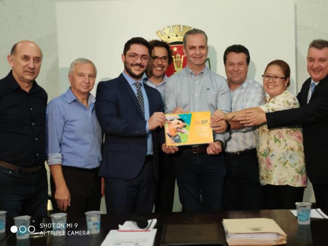 CAUSA ANIMAL - Ainda na prefeitura de Maringá o secretário recebeu um compilado de ações e leis para a causa animal que podem ser replicadas em todo o Estado do Paraná. O documento foi elaborado e entregue pelo vereador de Maringá Flávio Mantovani. Também foi apresentado alguns cases de sucesso que foram implantados na cidade de Maringá.