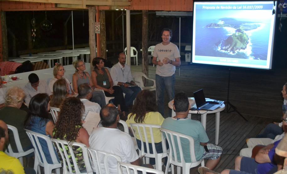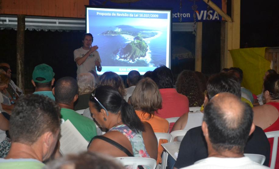A revisão da atual lei é uma demanda dos moradores da Ilha, e vem sendo discutida desde 2011. “Todo o trabalho feito anteriormente foi aproveitado e aprimorado, e é essa compilação que trouxemos aqui como uma proposta inicial para ser avaliada pelos moradores, empresários e outros setores, que poderão de forma organizada e participativa, colocar suas contribuições, mas sempre considerando a coletividade e a conservação da natureza”, destacou o secretário estadual do Meio Ambiente e Recursos Hídricos, Ricardo Soavinski, que conduziu a reunião na Vila de Nova Brasília.