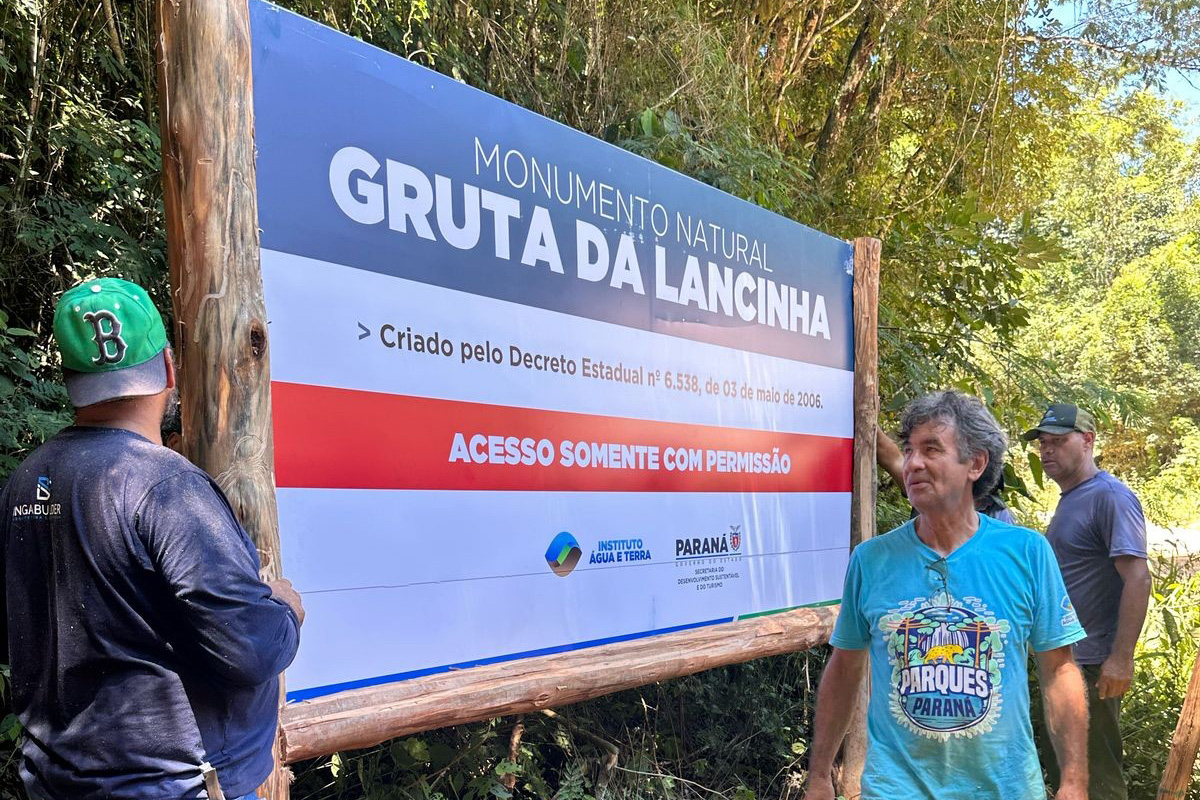 O Instituto Água e Terra (IAT) finalizou neste mês parte da reestruturação da Unidade de Conservação (UC) Monumento Natural Gruta da Lancinha, em Rio Branco do Sul, na Região Metropolitana de Curitiba. O órgão instalou rochas grandes, também chamados de matacos, no entorno de dois pontos estratégicos da estrada que passa por cima da gruta. A medida busca garantir mais segurança e evita possíveis desmoronamentos. A iniciativa foi executada em parceria com a prefeitura de Rio Branco do Sul e a empresa Votorantim Cimentos, responsável por doar as rochas e os veículos usados na instalação.