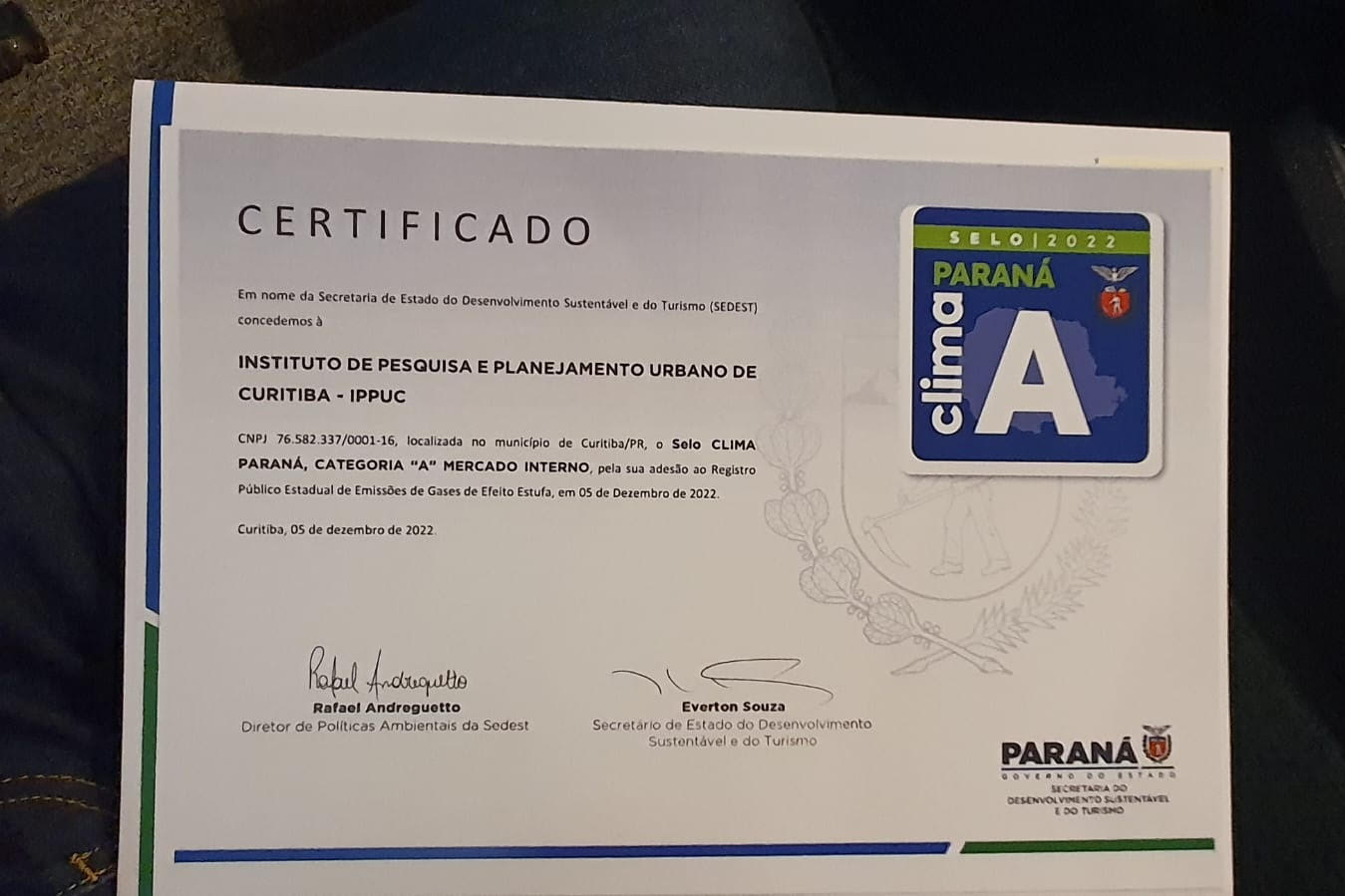 Com o novo formato desde 2022, ele espera maior adesão da iniciativa privada e das prefeituras. Entre os certificados estão as prefeituras de Curitiba e Maringá, que participaram por meio do Instituto de Pesquisa e Planejamento Urbano de Curitiba (IPPUC) e do Instituto de Pesquisa e Planejamento Urbano de Maringá (IPPLAM).