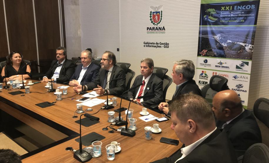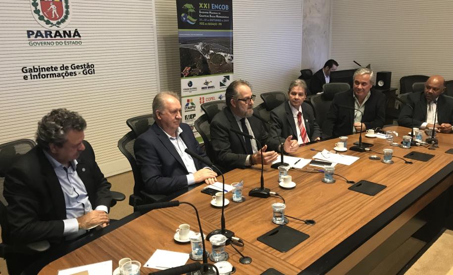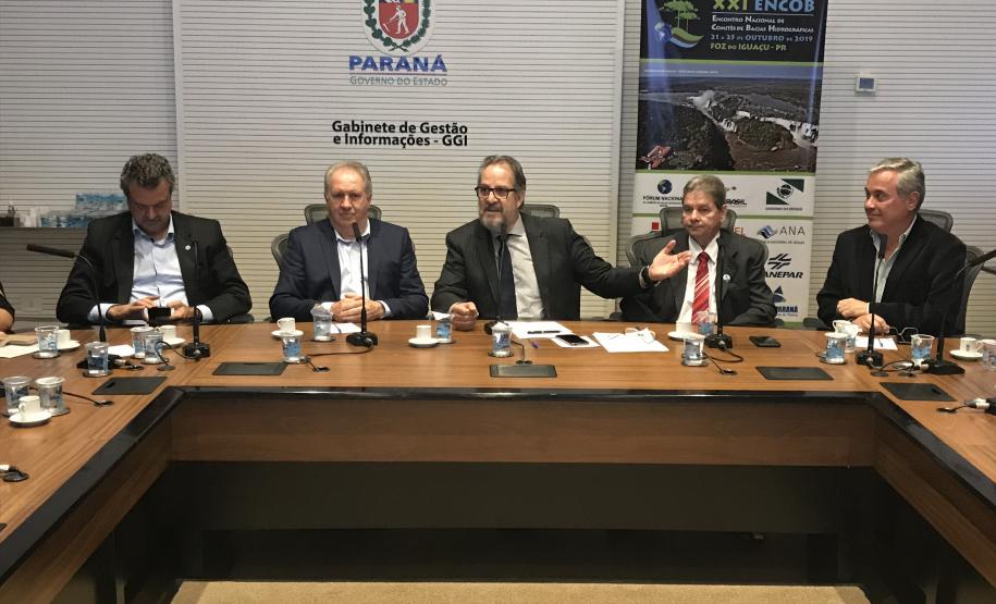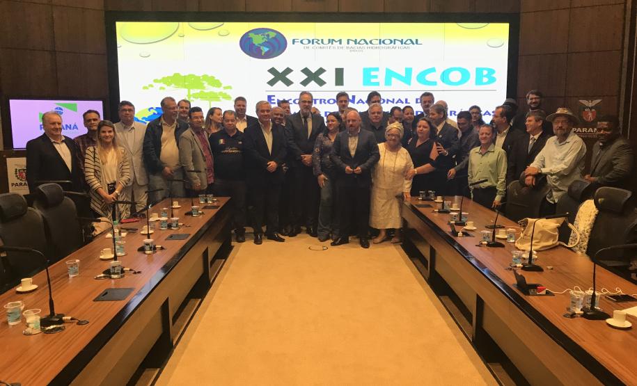 O Paraná lançou oficialmente nesta terça-feira (04), no Palácio Iguaçu, o XXI Encontro Nacional de Comitês de Bacias Hidrográficas (Encob), evento que acontecerá entre os dias 21 e 25 de outubro de 2019, em Foz do Iguaçu. Promovido pelo Fórum Nacional de Comitês de Bacias Hidrográficas, o Encob tem apoio institucional do Governo do Paraná, por meio da Secretaria de Estado do Meio Ambiente e Recursos Hídricos.