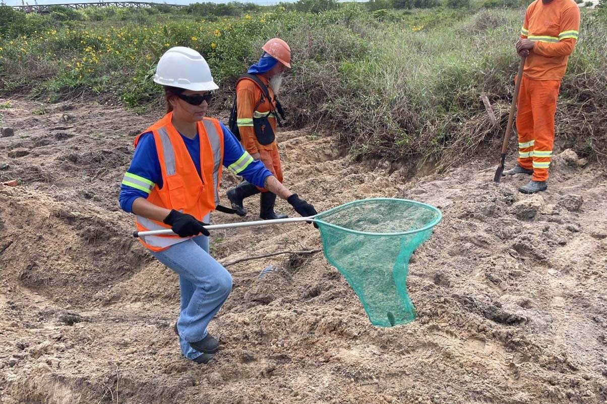 Entre as tarefas em andamento estão o controle das áreas de intervenção e o resgate e a captura de animais eventualmente encontrados na região – indivíduos que são encaminhados para locais seguros, afastados do trecho em obras, onde ocorre a soltura.