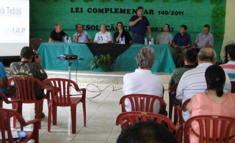 Durante a reunião, o coordenador da descentralização do licenciamento ambiental do IAP, José Luiz Bolicenha, falou sobre as exigências legais para a descentralização e o apoio que o instituto dará aos municípios que se homologarem junto ao Conselho Estadual de Meio Ambiente. De acordo com ele, a alternativa para municípios pequenos é a descentralização por meio de consórcio.