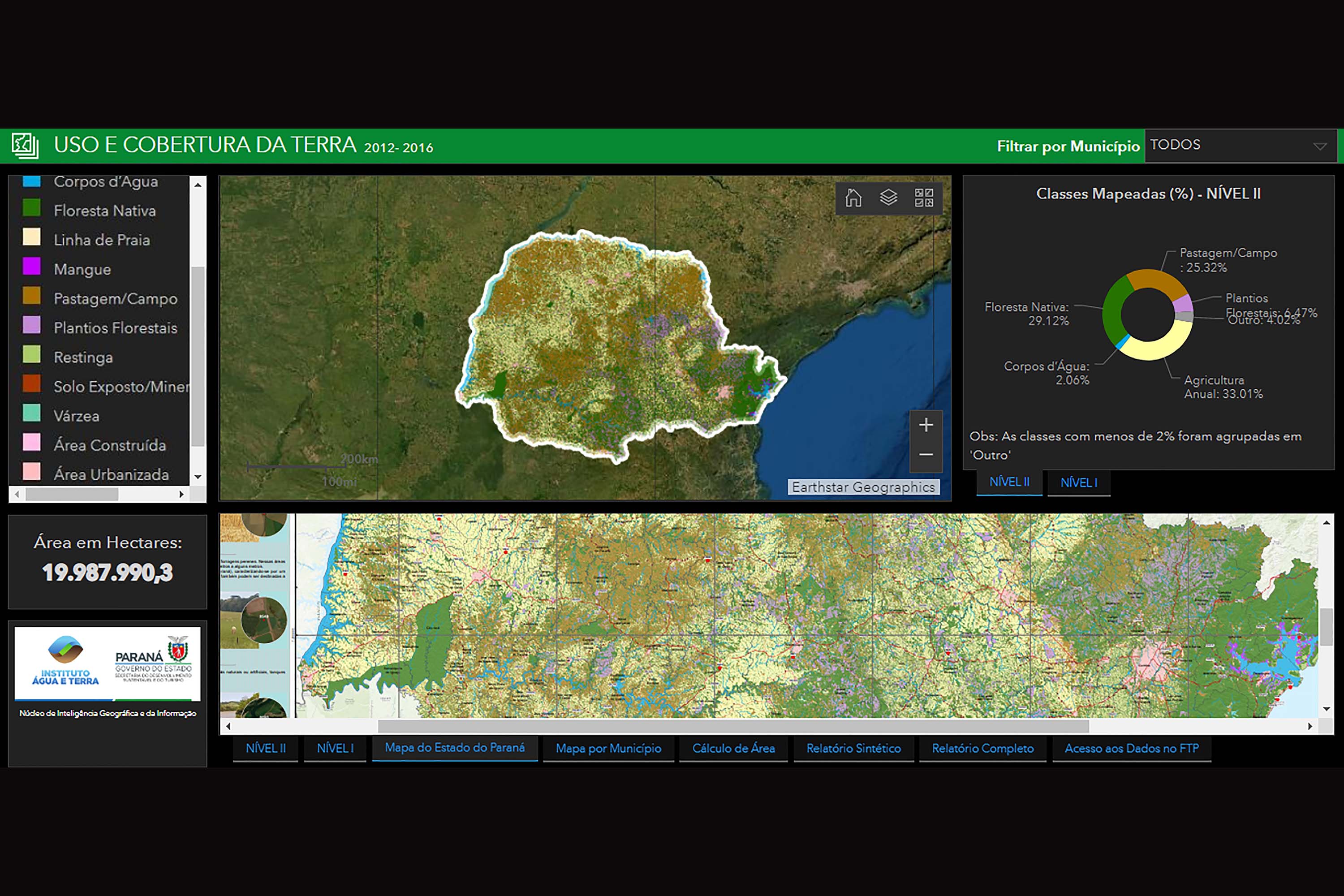 INTELIGÊNCIA - A aplicação GEO foi desenvolvida pelo Núcleo de Inteligência Geográfica e da Informação do IAT e tem como objetivo apresentar os resultados do mapeamento de forma simples, interativa e de fácil consulta.