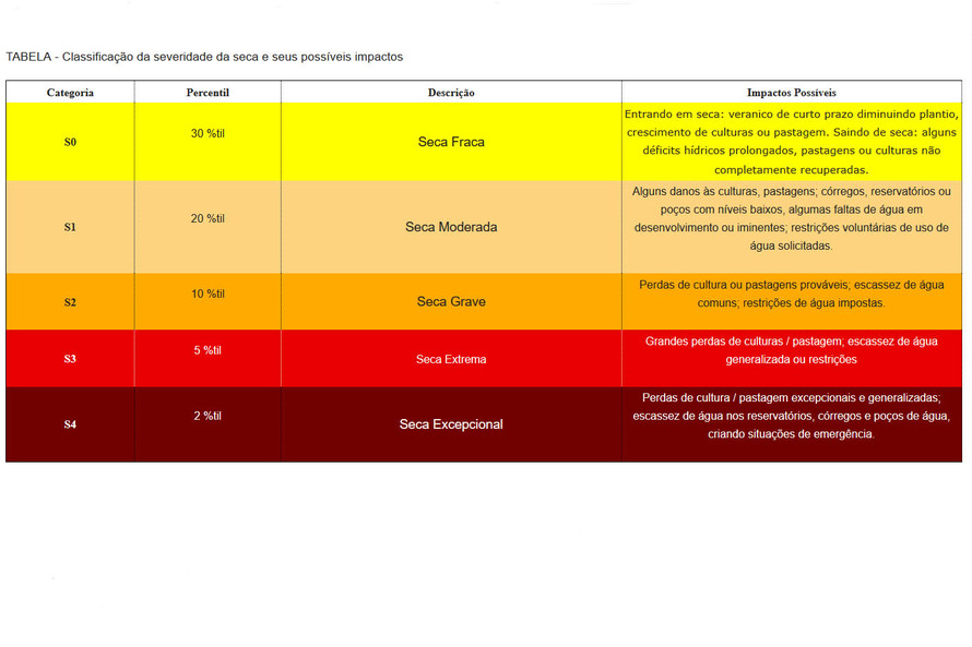 Confira AQUI a tabela da severidade da seca e seus impactos.