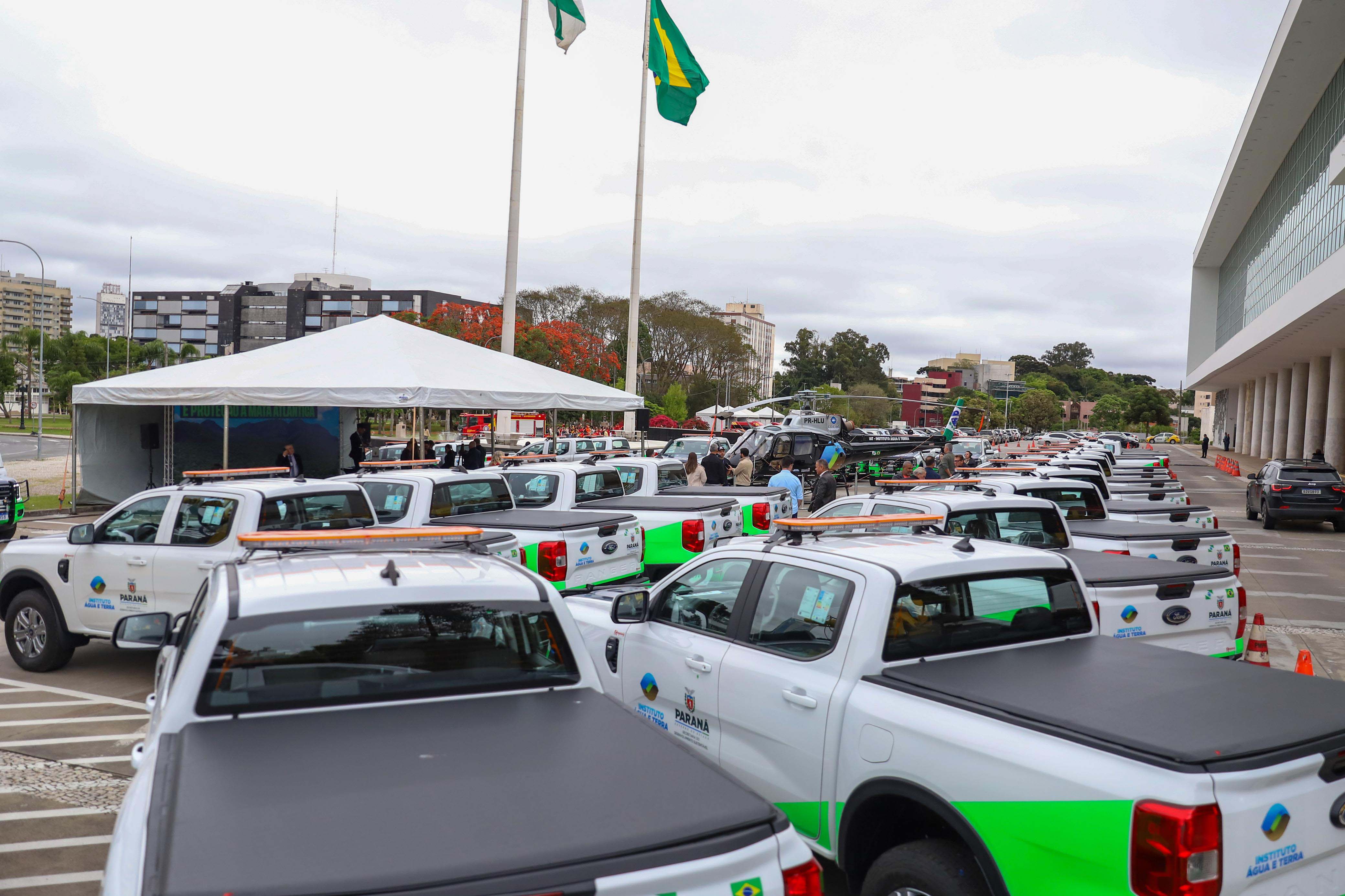 O Governo do Estado entregou nesta quinta-feira (30), no Palácio Iguaçu, em Curitiba, 50 caminhonetes novas e anunciou a renovação do contrato de locação de um novo helicóptero utilizados em ações de fiscalização e monitoramento ambiental do Instituto Água e Terra (IAT). Os investimentos somam R$ 63 milhões e integram a estratégia do Governo do Estado de reforçar o combate ao desmatamento ilegal e a outros crimes ambientais, área em que o Paraná vem obtendo resultados expressivos nos últimos anos.