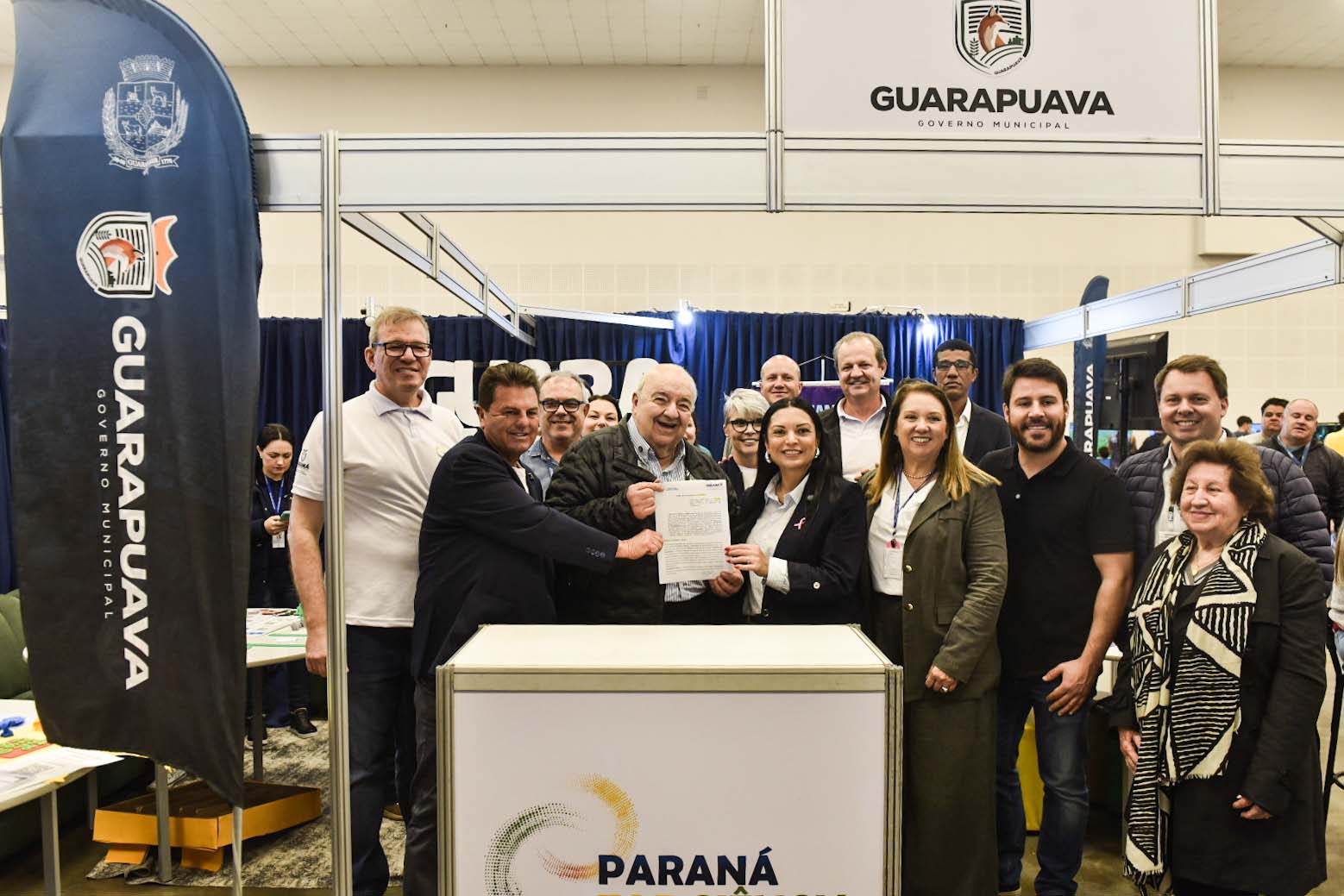 PRESENÇAS – A solenidade de assinatura contou também com as presenças do secretário de Estado da Ciência, Tecnologia e Ensino Superior, Aldo Nelson Bona; da vice-prefeita de Guarapuava, Rosângela Virmond; do reitor da Unicentro, professor Fábio Hernandes; do presidente da Câmara Municipal, Pedro Moraes; da chefe de Unidades de Conservação do IAT em Guarapuava, Aline Hlatki; do chefe do escritório regional do IAT, Marco Antonio Silva; e do secretário municipal de Trânsito e Transportes, Péricles de Matos.