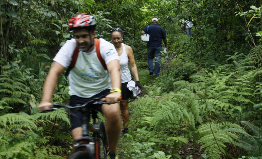 Ciclistas e apaixonados pela natureza contemplaram as belezas naturais da Mata Atlântica durante o 1º Passeio Ciclístico de Aventura em Pontal do Paraná, na manhã deste domingo (12). O percurso de 20 km não desanimou a turma que veio preparada para uma manhã de aventura e de aprendizado sobre o meio ambiente. A iniciativa é da Secretaria do Meio Ambiente e Recursos Hídricos (Sema) com apoio de outros órgãos estaduais e da prefeitura do município.