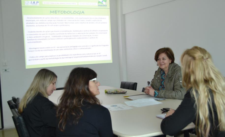 A apresentação do programa foi feita pela equipe de Educação Ambiental da Secretaria junto com o Instituto Ambiental do Paraná (IAP). “Este intercâmbio entre os profissionais da área é muito proveitoso e todo o Sistema Sema ganha, já que a troca de ideias e a integração é fundamental para podermos dar um melhor andamento aos projetos, além de nos motivar a fazer sempre melhor”, explica Ângela Panizzi, do Departamento de Unidades de Conservação do IAP.
