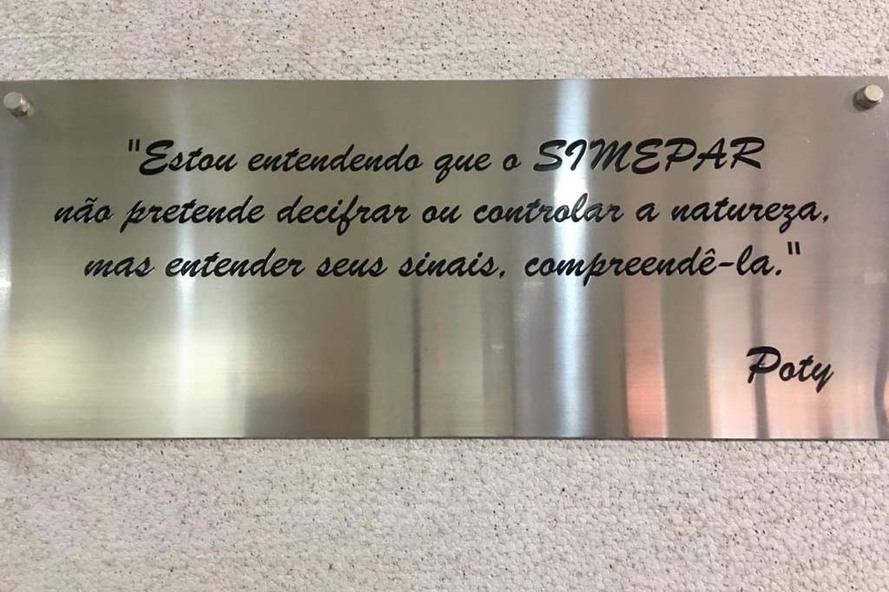 Alvim falou que o nome Sinais da Natureza foi inspirado na seguinte frase do artista plástico paranaense Poty Lazzarotto: estou entendendo que o Simepar não pretende decifrar ou controlar a natureza, mas entender seus sinais, compreendê-la. O texto está estampado no mural do artista Tempo e a Vida, na sede do órgão.
