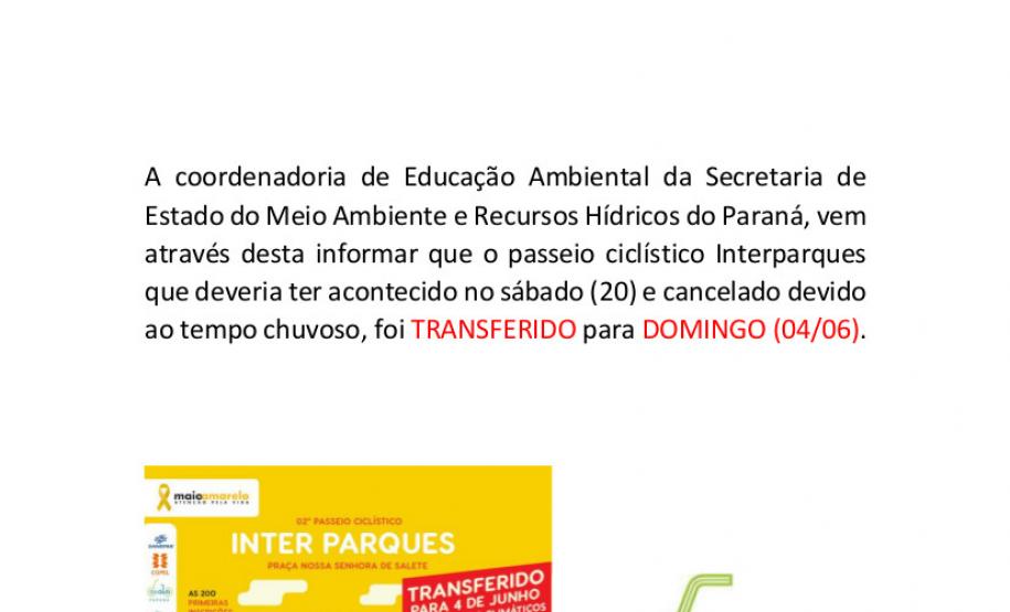 Meio Ambiente REMARCADO PASSEIO CICLÍSTICO INTERPARQUES 19/05/2017 - 09:55 GALERIA DE IMAGENS Compartilhe: Voltar Início Imprimir Baixar