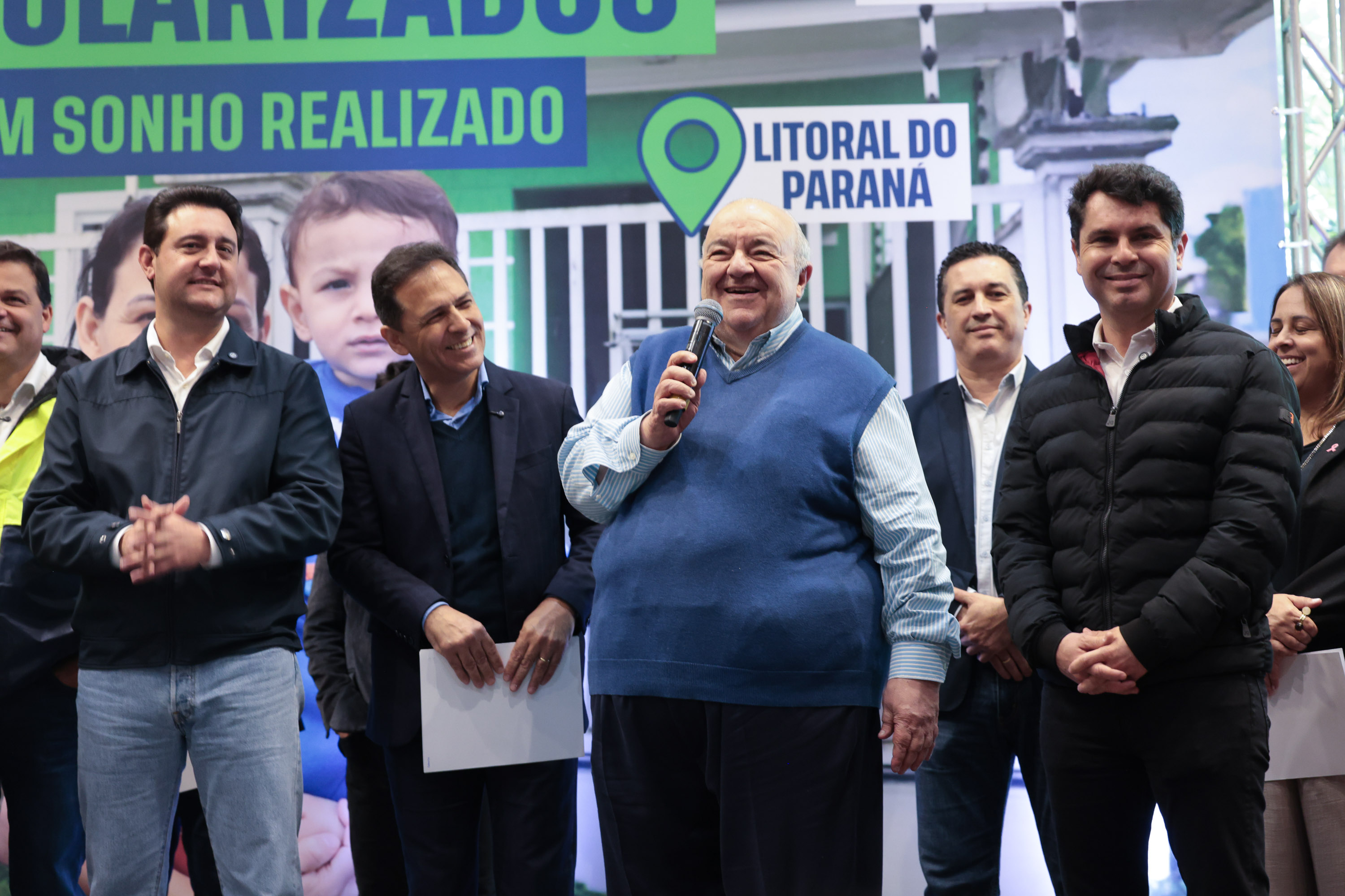 “É a segunda vez que eu faço essa regularização fundiária em Paranaguá, que é a cidade mais antiga do Estado, mas que que ao longo da história, até pelo crescimento que teve, ao longo do tempo não teve essa organização urbana que estamos trazendo agora com esses títulos sendo reconhecidos e dado às pessoas que ali vivem de fato”, comentou o governador. “Essas 240 famílias passam agora a ter o documento da sua casa, do seu estabelecimento passa a ser um patrimônio de fato dessas pessoas”, complementou.