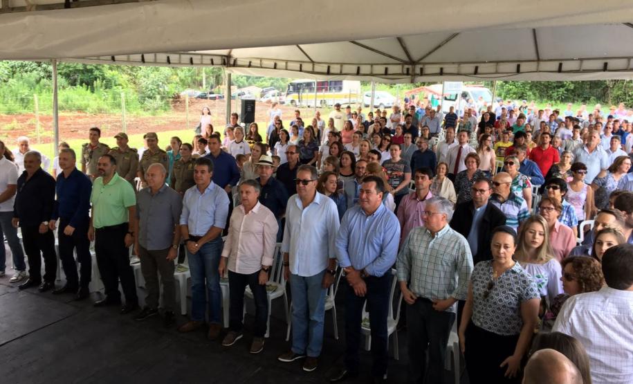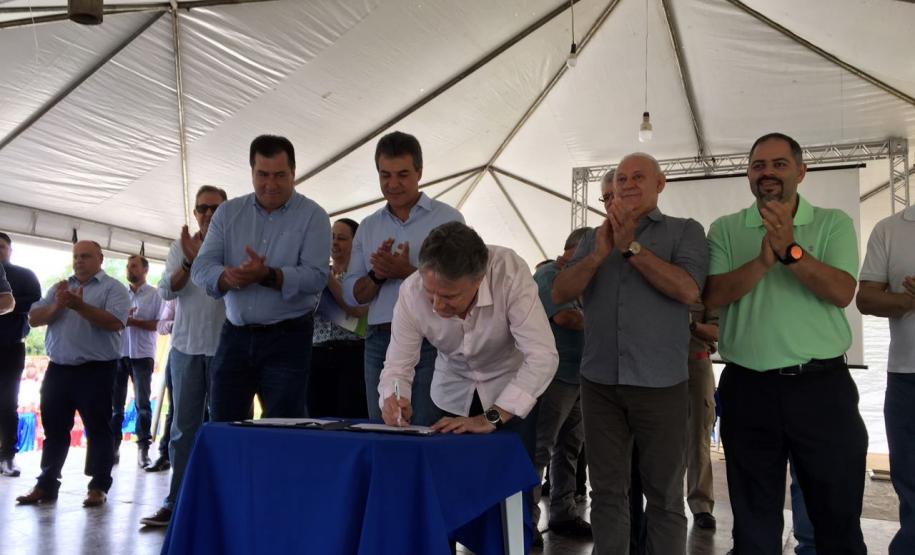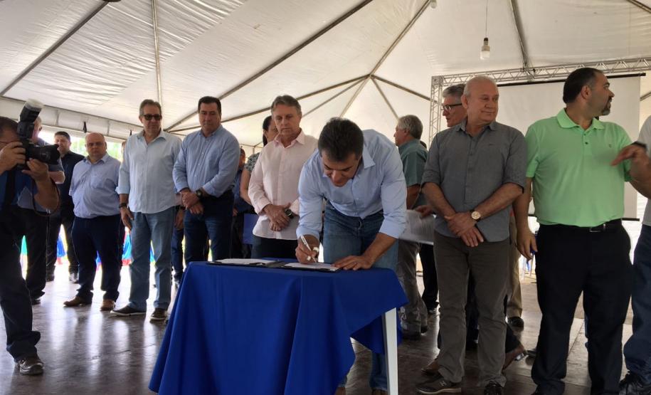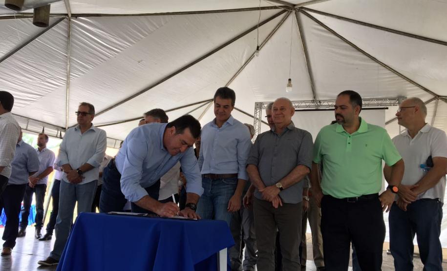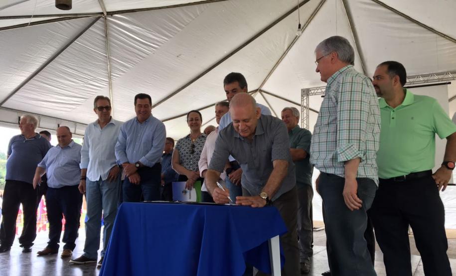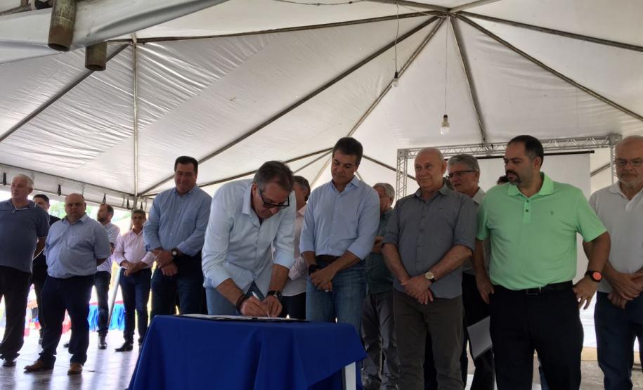 PRESENÇAS - Participaram da solenidade o chefe da Casa Civil, Valdir Rossoni; os secretários de Estado de Agricultura e Abastecimento, Norberto Ortigara; de Assuntos Estratégicos, Edgar Bueno e Justiça, Trabalho e Direitos Humanos, Artagão Junior; o presidente da Assembleia Legislativa do Paraná, Ademar Traiano e o diretor-presidente da Compagas, Jonel Nazareno Iurk.