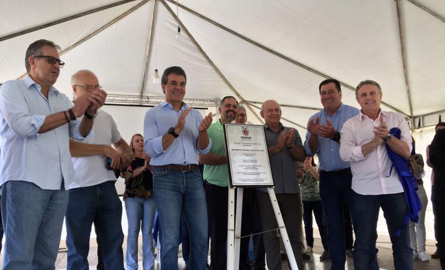 CONVÊNIO - Na solenidade, o IAP e a Prefeitura de Prudentópolis firmaram um convênio que estabelece estratégias e ações voltadas para o uso da unidade. “O convênio é para uma administração compartilhada com o município”, explicou o presidente do IAP, Luiz Tarcísio Mossato Pinto. “A prefeitura vai cuidar de receber as pessoas e fazer todo o atendimento e o IAP vai cuidar da unidade de conservação. Para nós é muito significativo trazer o município como parceiro em um projeto como este”, afirmou. “Receber pessoas e escolas e compartilhar a educação ambiental aqui dentro.”