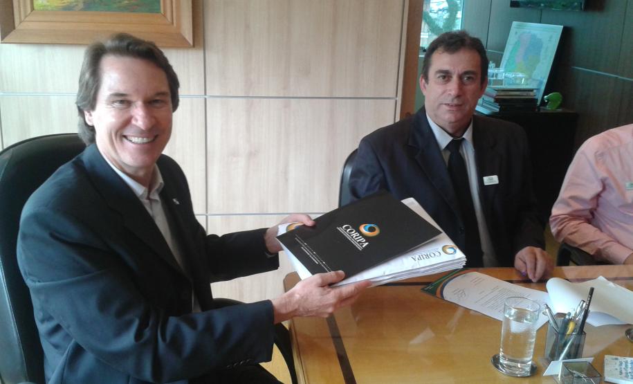 O Consórcio Intermunicipal para Conservação do Remanescente do Rio Paraná e Áreas de Influência entregou à secretária estadual do Meio Ambiente e Recursos Hídricos, proposta de descentralização de licenciamento ambiental. O documento foi entregue nesta 3ª feira (24), pelo presidente do Coripa, Valdelei Aparecido Nascimento ao secretário estadual de Meio Ambiente e Recursos Hídricos do Paraná, Ricardo Soavinski.