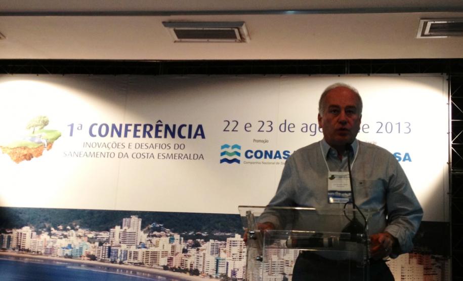 O secretário estadual do Meio Ambiente e Recursos Hídricos, Luiz Eduardo Cheida, foi um dos palestrantes da 1ª Conferência Inovações e Desafios do Saneamento da Costa Esmeralda, que reuniu especialistas na área de saneamento básico nesta quinta e sexta-feira (22 e 23), em Itapema, Santa Catarina.