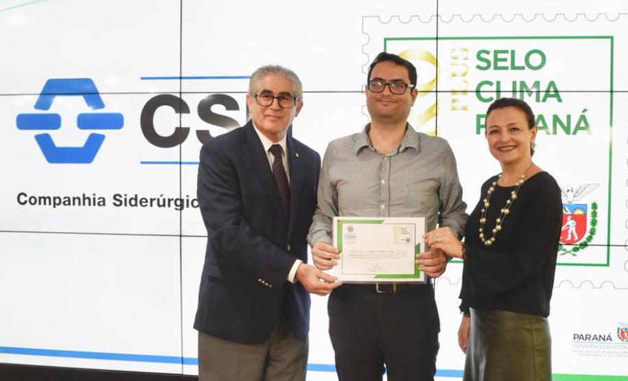 OURO PLUS – São destaques da edição 2019 do prêmio a Klabin - unidades de Monte Alegre e Puma; a Companhia Siderúrgica Nacional/CSN – unidade de Araucária, e a Engie do Brasil Energia. Elas foram agraciadas com o Selo Clima Paraná Ouro Plus por alcançar a redução das emissões de gases de efeito estufa, no ano inventariado de 2018, comparado ao de 2017.